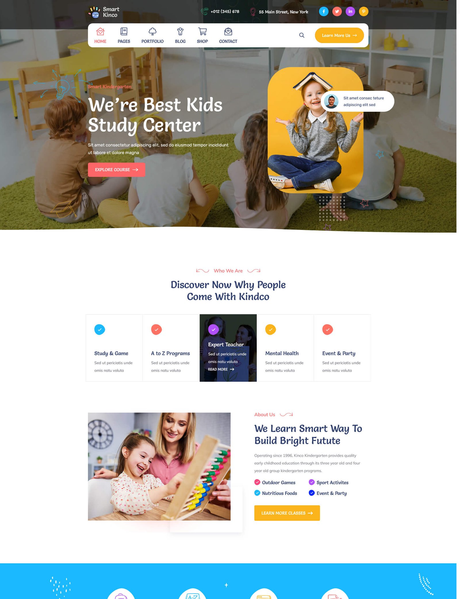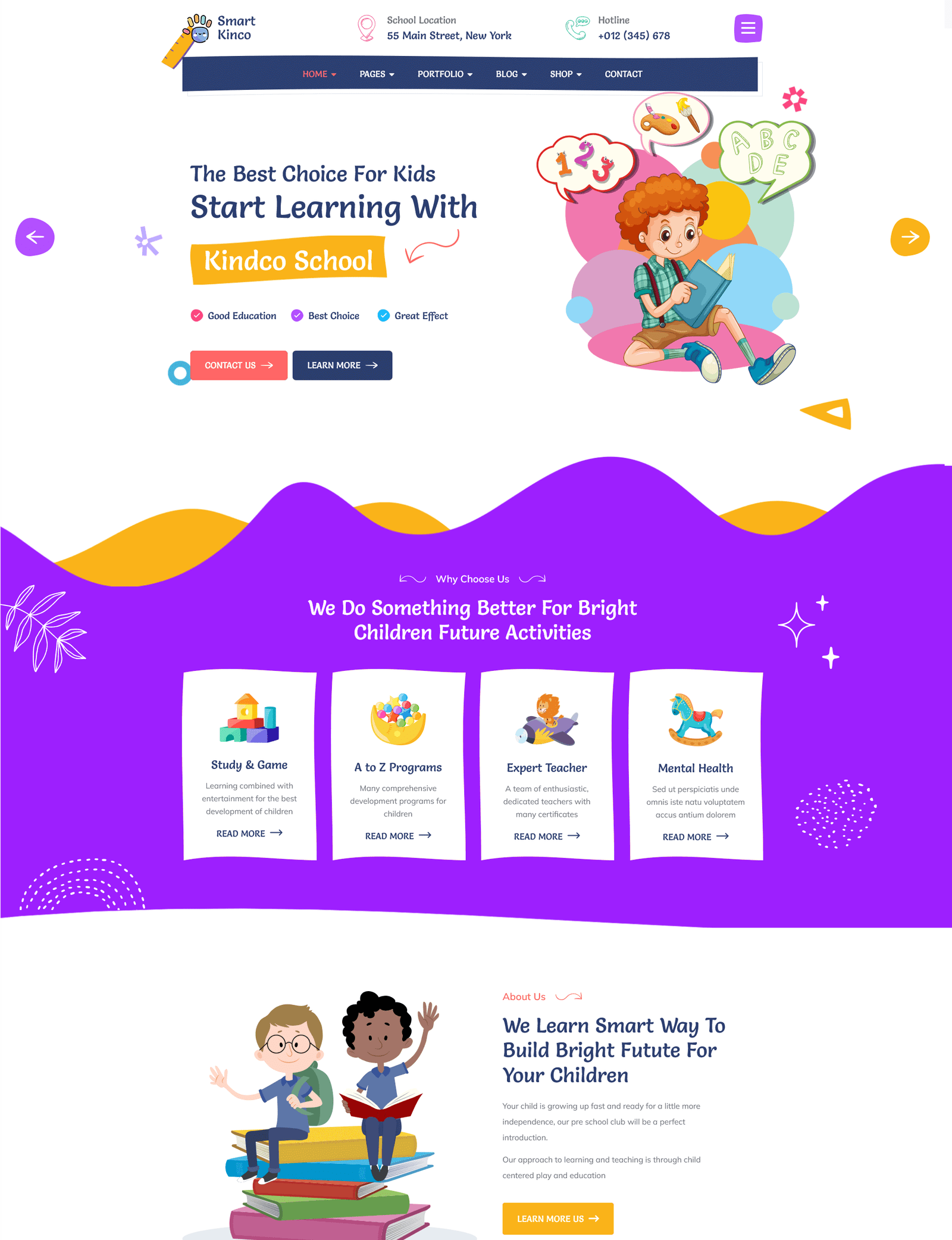 The Kinco Wordpress theme is built for websites that cater to preschools, kindergartens, elementary schools, events for kids and parents, public and private schools, and builds pages web in different niches aimed at children.